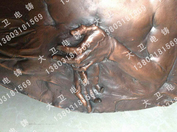 1.材質(zhì): 純紫銅鑄造在材質(zhì)上不會扯皮,表面效果良好。 2.鑄造工藝 電鑄工藝沒有砂眼、收縮、氧化皮、縮松等傳統(tǒng)工藝的鑄造缺陷。以及澆道、冒口在雕塑肌理上的橫行霸道。 3.復(fù)制力 因沒有收縮,可一比一的復(fù)制雕塑作品達(dá)到鑄什么像什么的境界,傳統(tǒng)工藝是達(dá)不到的。 4.平面鑄造 鑄造平面作品更是強(qiáng)項,面積最大2m*8m可以整體鑄造。厚度可以均勻掌握到(1mm-8mm)。 聯(lián)系我們